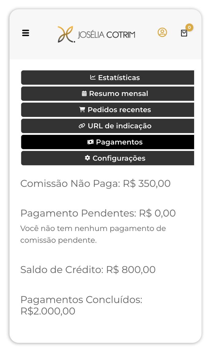 Faça parte da nossa equipe de afiliados e transforme seu potencial de vendas em ganhos reais. Com comissões atrativas, suporte rápido e eficiente e produtos de alta qualidade, a Josélia Cotrim oferece a oportunidade perfeita para você conquistar sua independência financeira. Valorizamos feedbacks verdadeiros e preferimos afiliados que já são clientes da marca, garantindo uma divulgação autêntica e confiável.